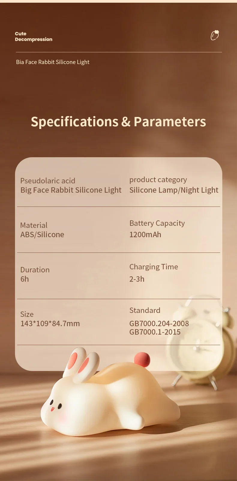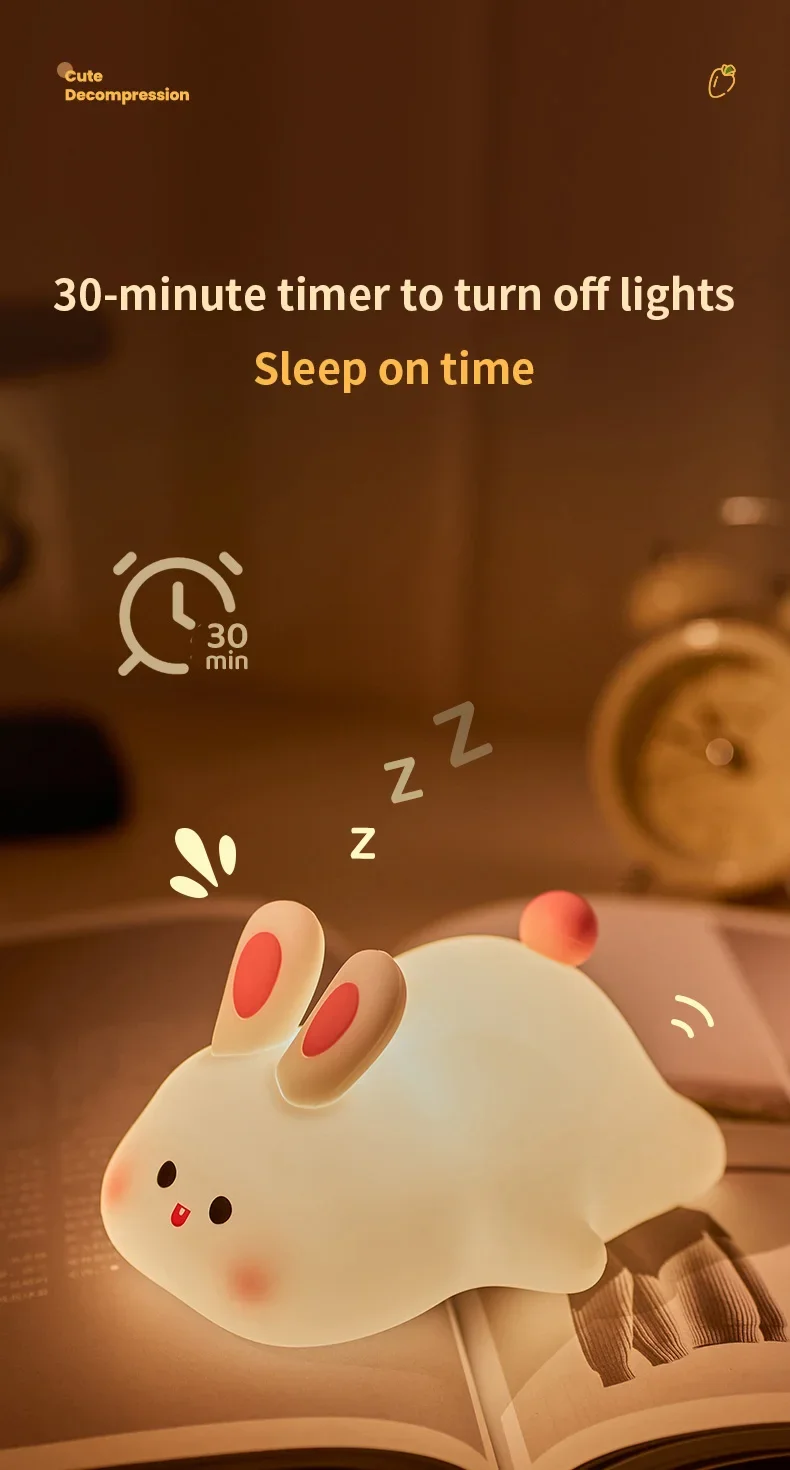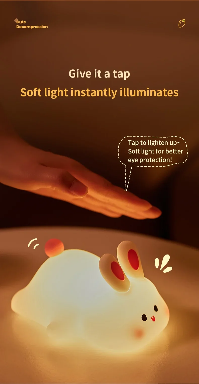 1buc drăguț în formă de iepure, reîncărcabilă prin USB, lumină de noapte din silicon pentru dormitor - protecția ochilor lampă de noptieră pentru somn Iluminare birou