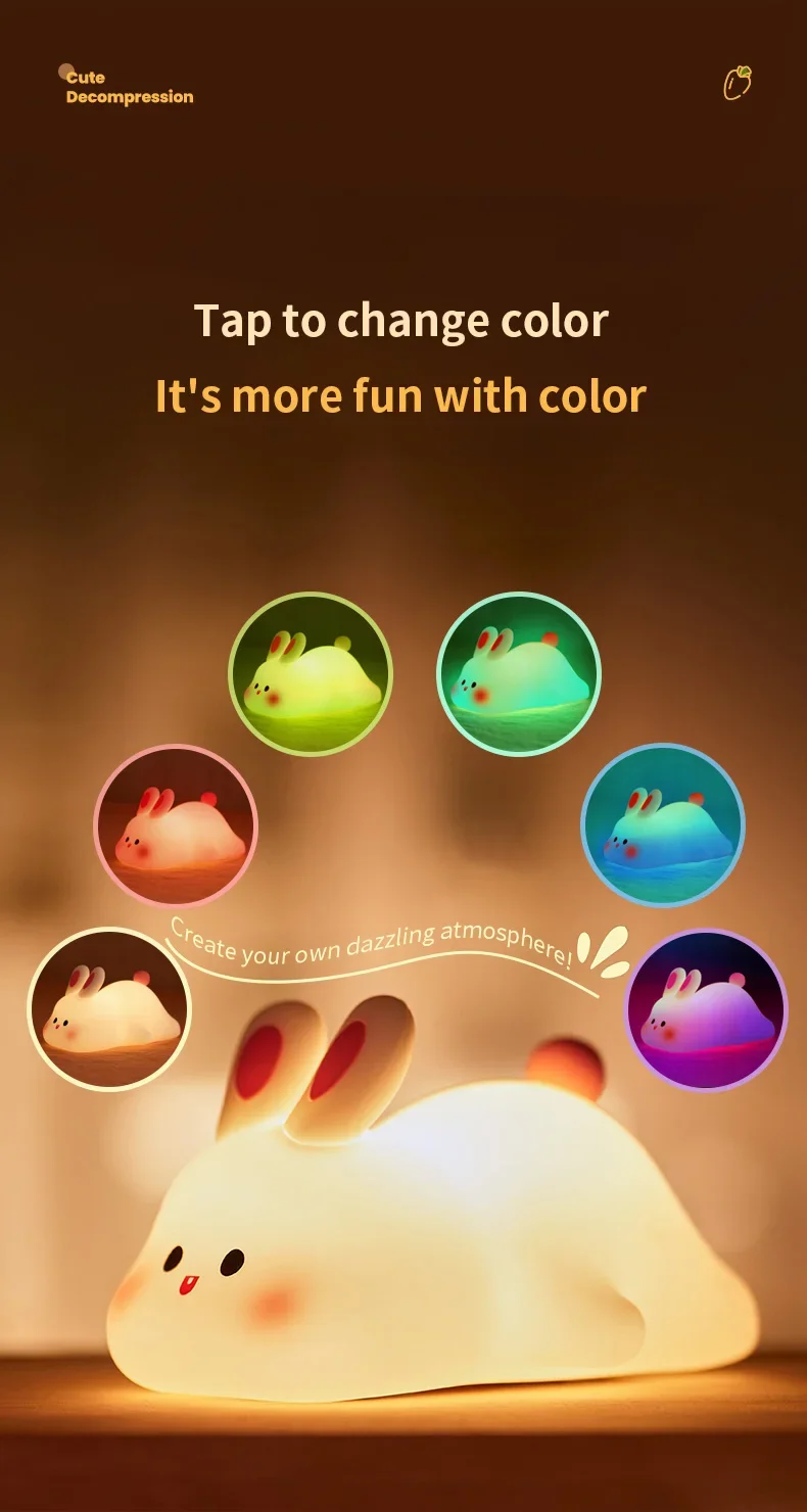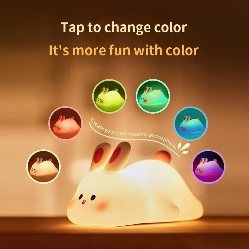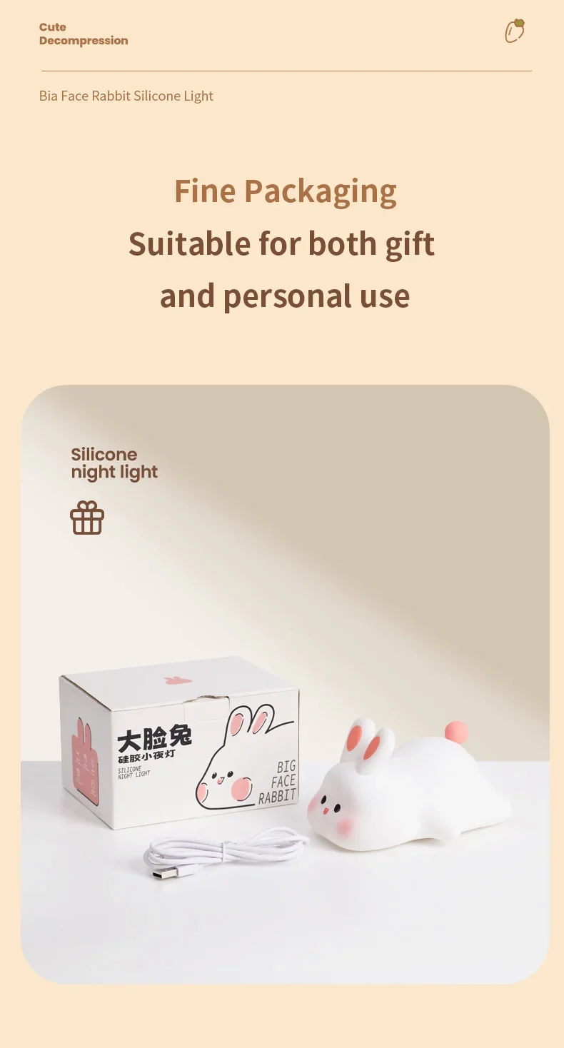 1buc drăguț în formă de iepure, reîncărcabilă prin USB, lumină de noapte din silicon pentru dormitor - protecția ochilor lampă de noptieră pentru somn Iluminare birou