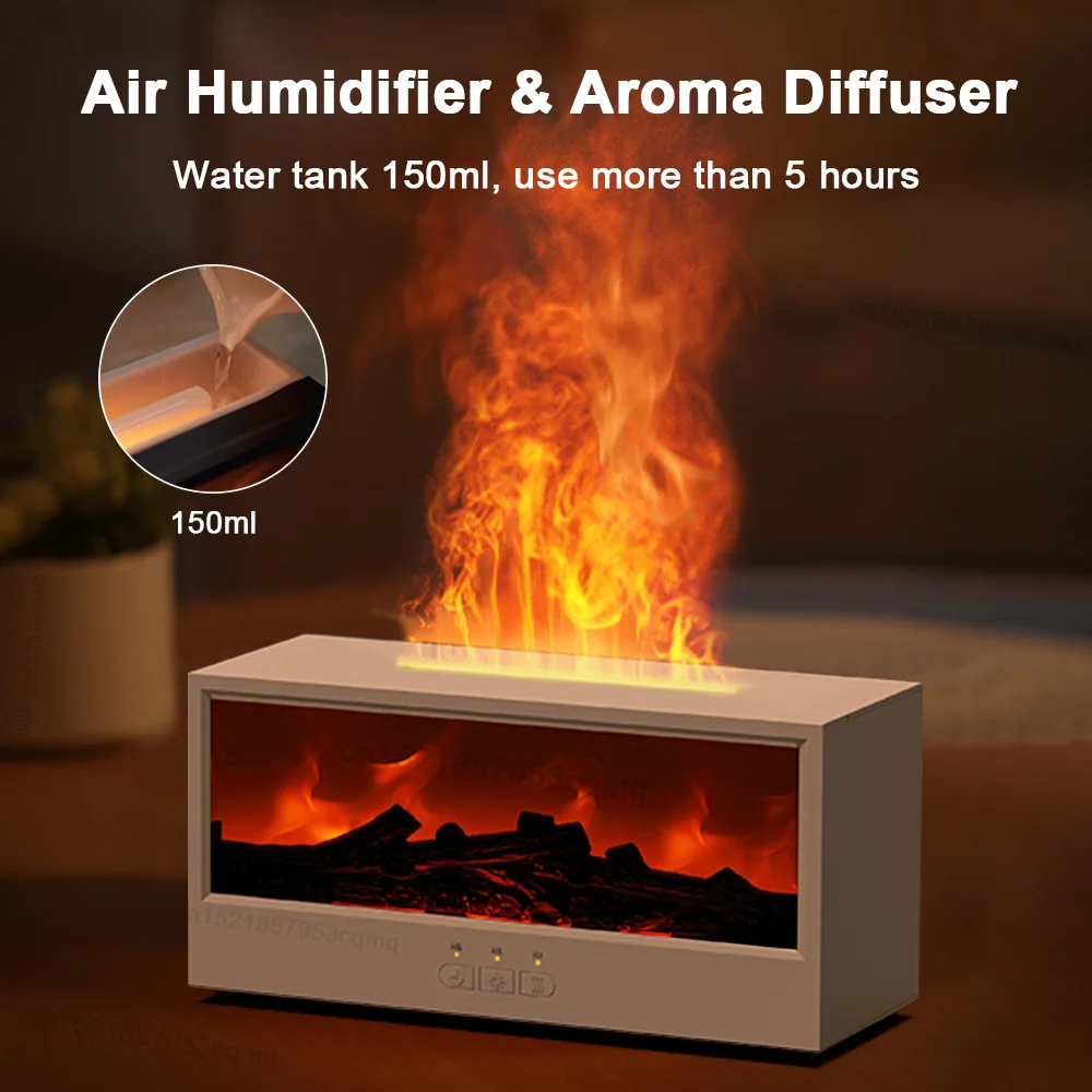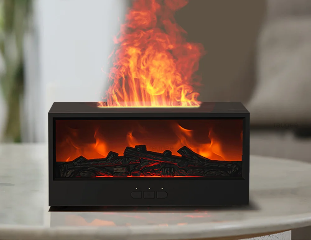Fireplace Air Humidifier Essential Oil Diffuser Flame Humidifier For Home Aromatherapy Fragrance Diffuser with RGB Night Light