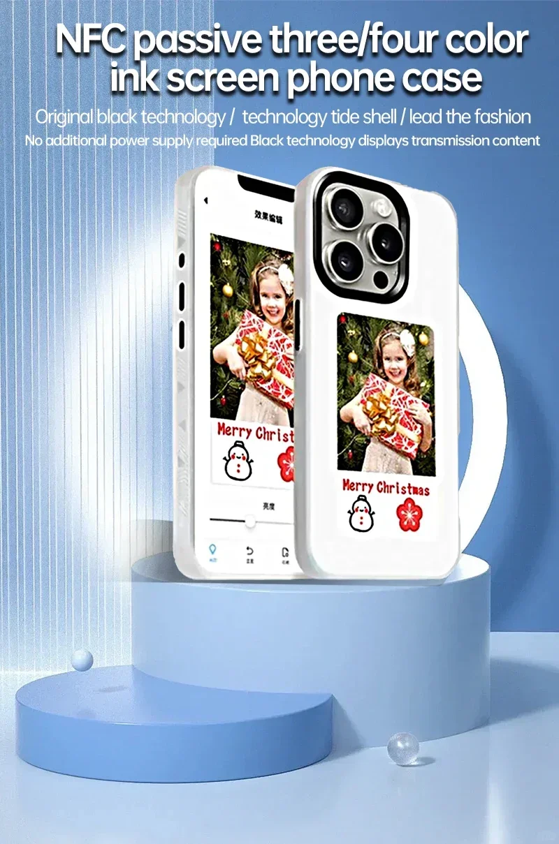 Carcasă de telefon inteligentă NFC pentru iPhone 15 13 14 Pro Max Ecran cu cerneală electronică Afișare Reîmprospătați fotografii prin APP Personaje anime Husă de telefon cuplu